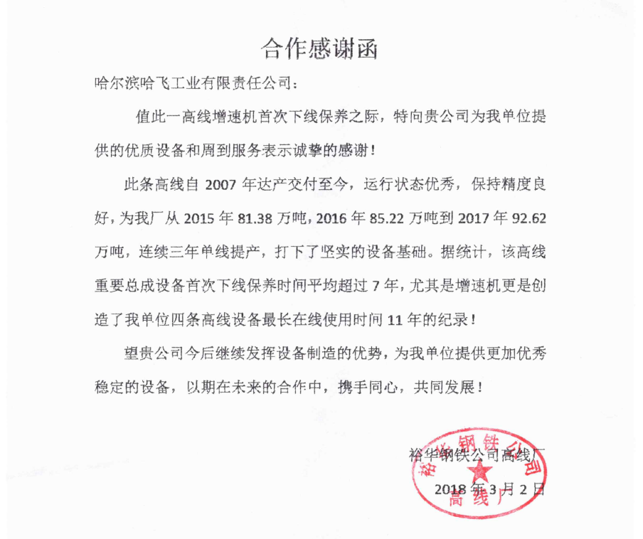 哈爾濱哈飛工業有限責任公司旗下的機電設備制造產業是目前國內規模大、專業的高速線材軋機和棒材軋機整機及備件的生產制造企業。公司現坐落于哈爾濱市平房區汽車零部件工業園B區,占地面積30000多平方米?,F有員工近550人,其中具有中高級職稱的研發及工程技術人員100余人。 公司曾獲得冶金部授予的“高線軋機設備優單位”稱號、國家技術進步二等獎等獎項,公司生產的十八項高線軋機重要部件通過了技術鑒定... +MORE