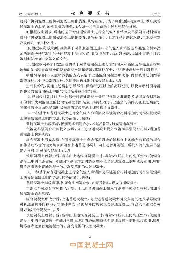 基于對(duì)普通混凝土進(jìn)行空氣混入和消除及早強(qiáng)混合材料添加的制作快硬混凝土的快硬混凝土制作裝置及其的制作方法(公開(kāi)號(hào):CN105992681A)