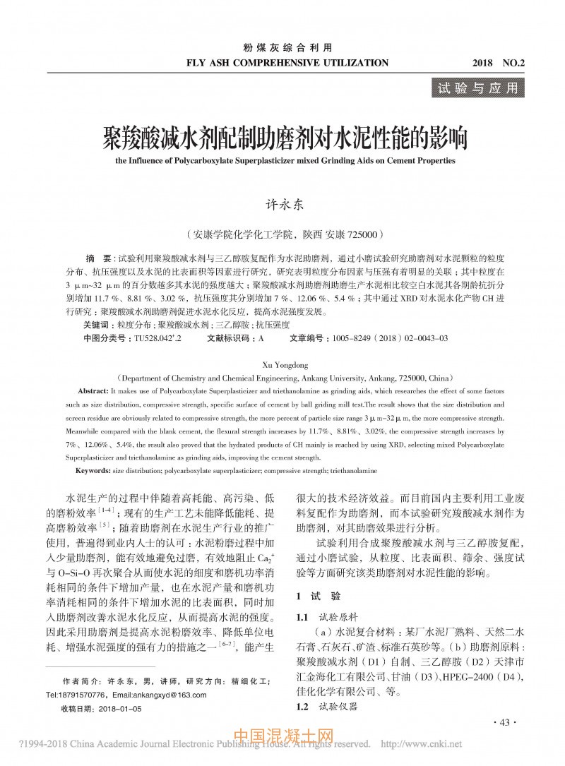 點(diǎn)擊下載全文:聚羧酸減水劑配制助磨劑對水泥性能的影響