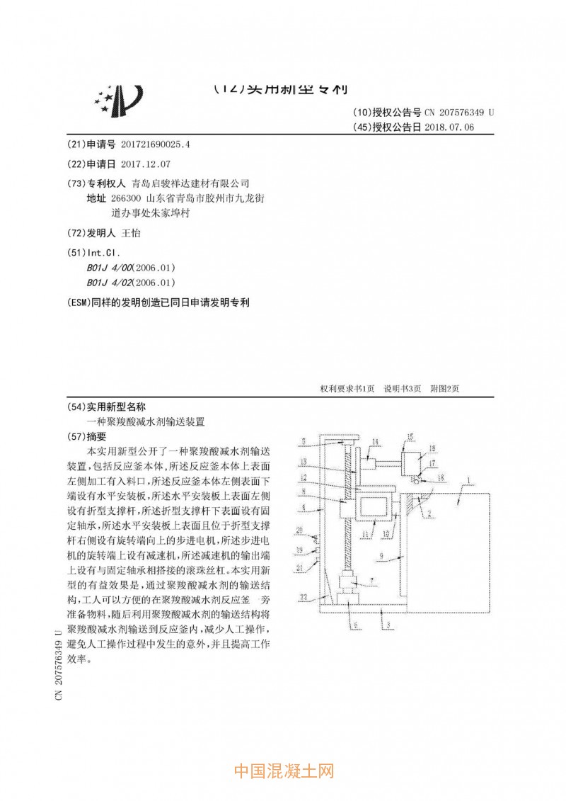 一種聚羧酸減水劑輸送裝置(公開號(hào):CN207576349U)