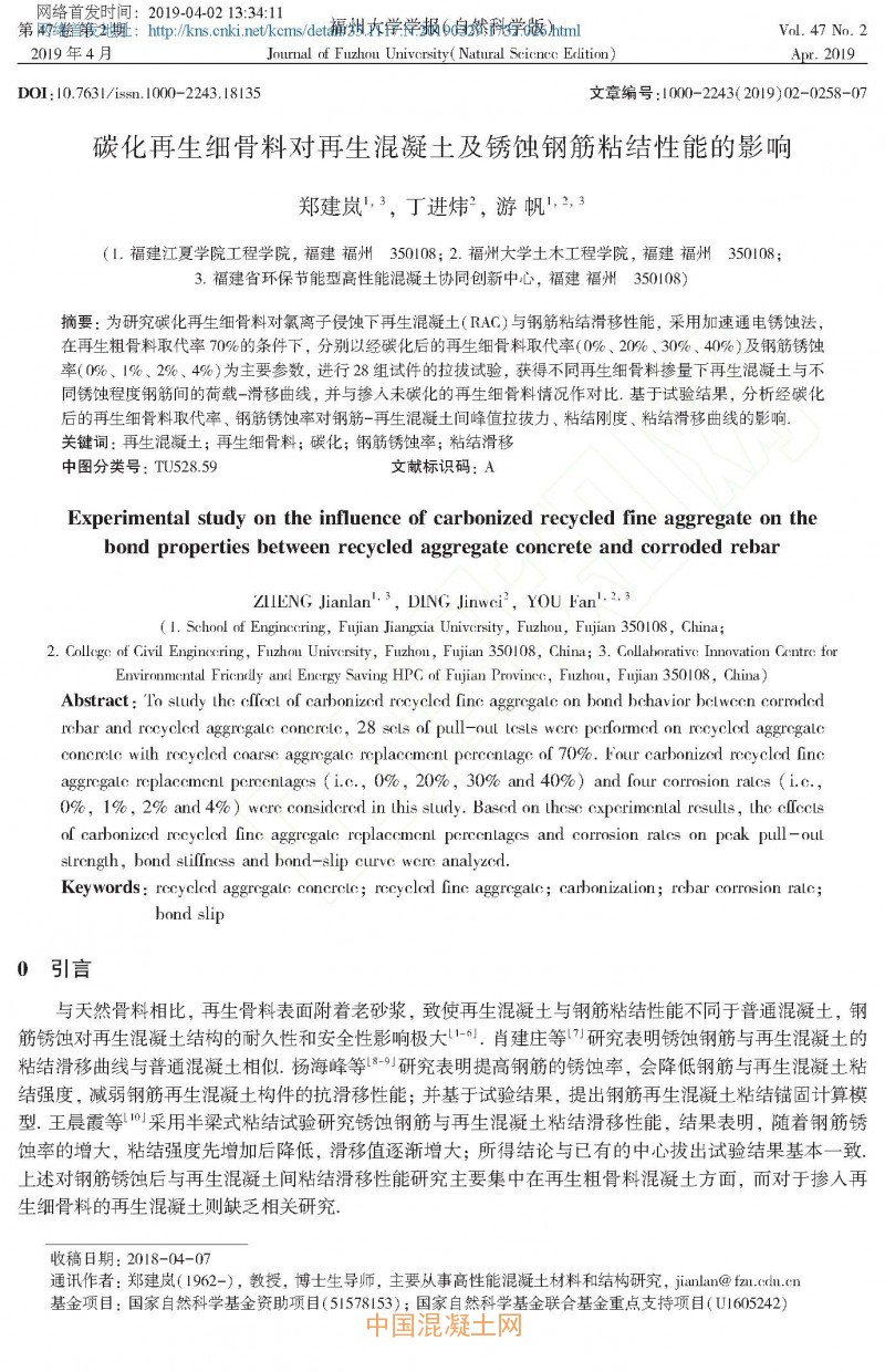 點(diǎn)擊下載全文:碳化再生細(xì)骨料對再生混凝土及銹蝕鋼筋粘結(jié)性能的影響