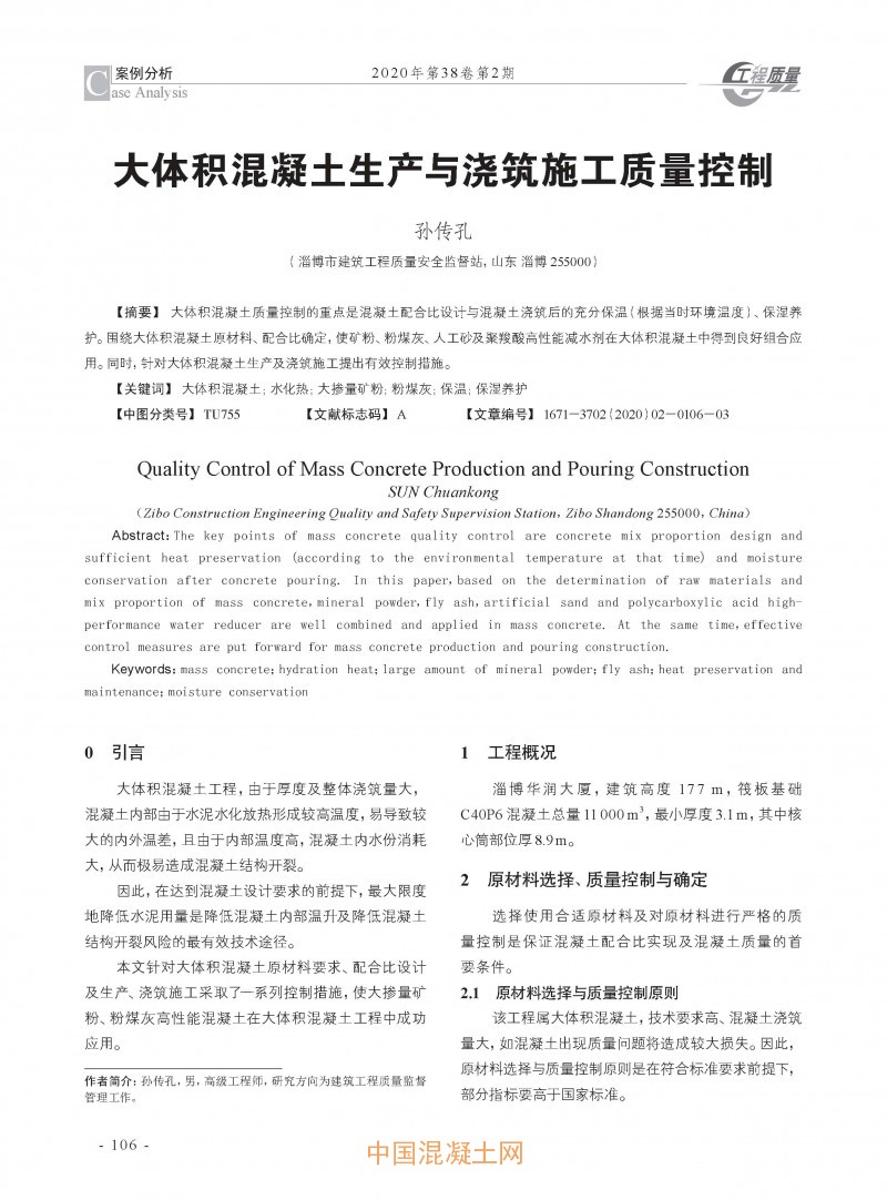 點擊下載全文:大體積混凝土生產(chǎn)與澆筑施工質(zhì)量控制