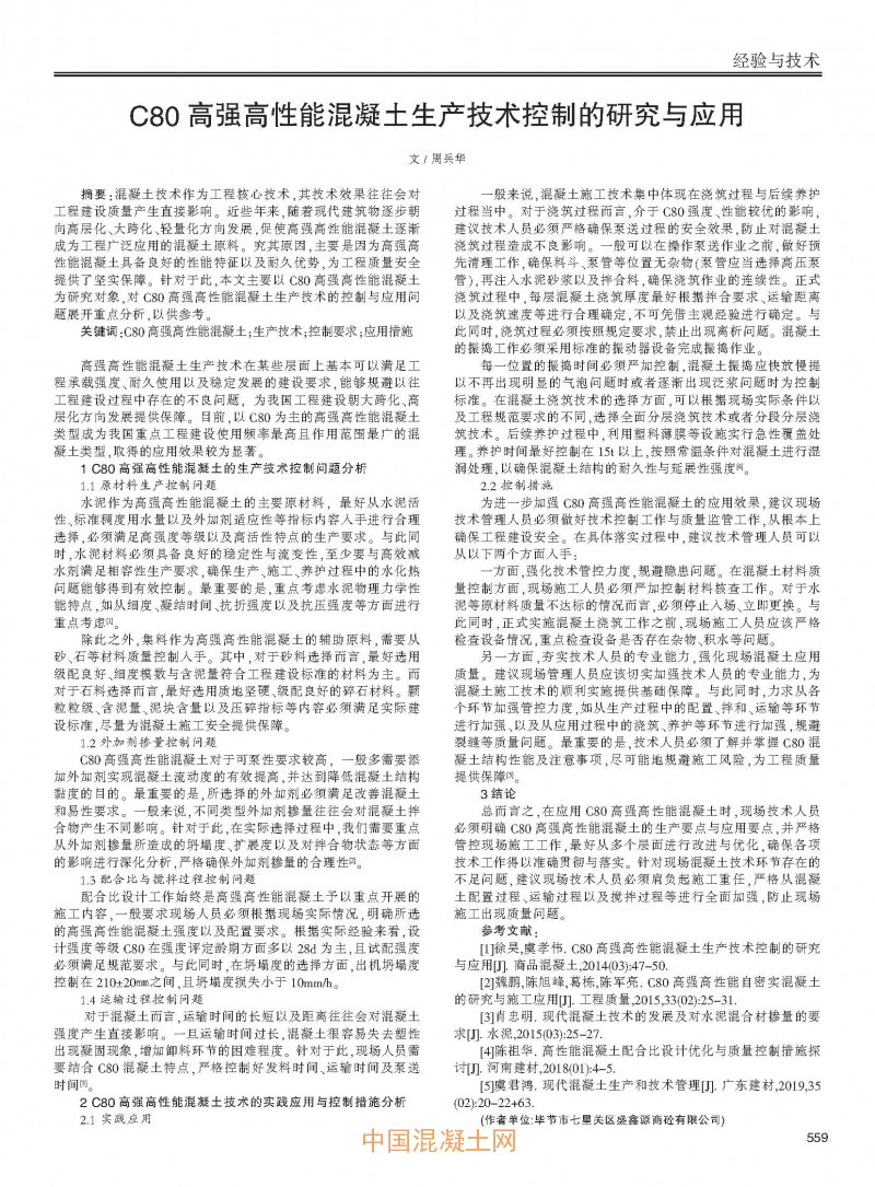 點擊下載全文:C80高強高性能混凝土生產(chǎn)技術控制的研究與應用