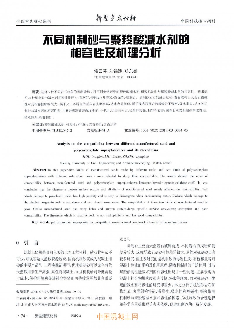 點(diǎn)擊下載全文:不同機(jī)制砂與聚羧酸減水劑的相容性及機(jī)理分析