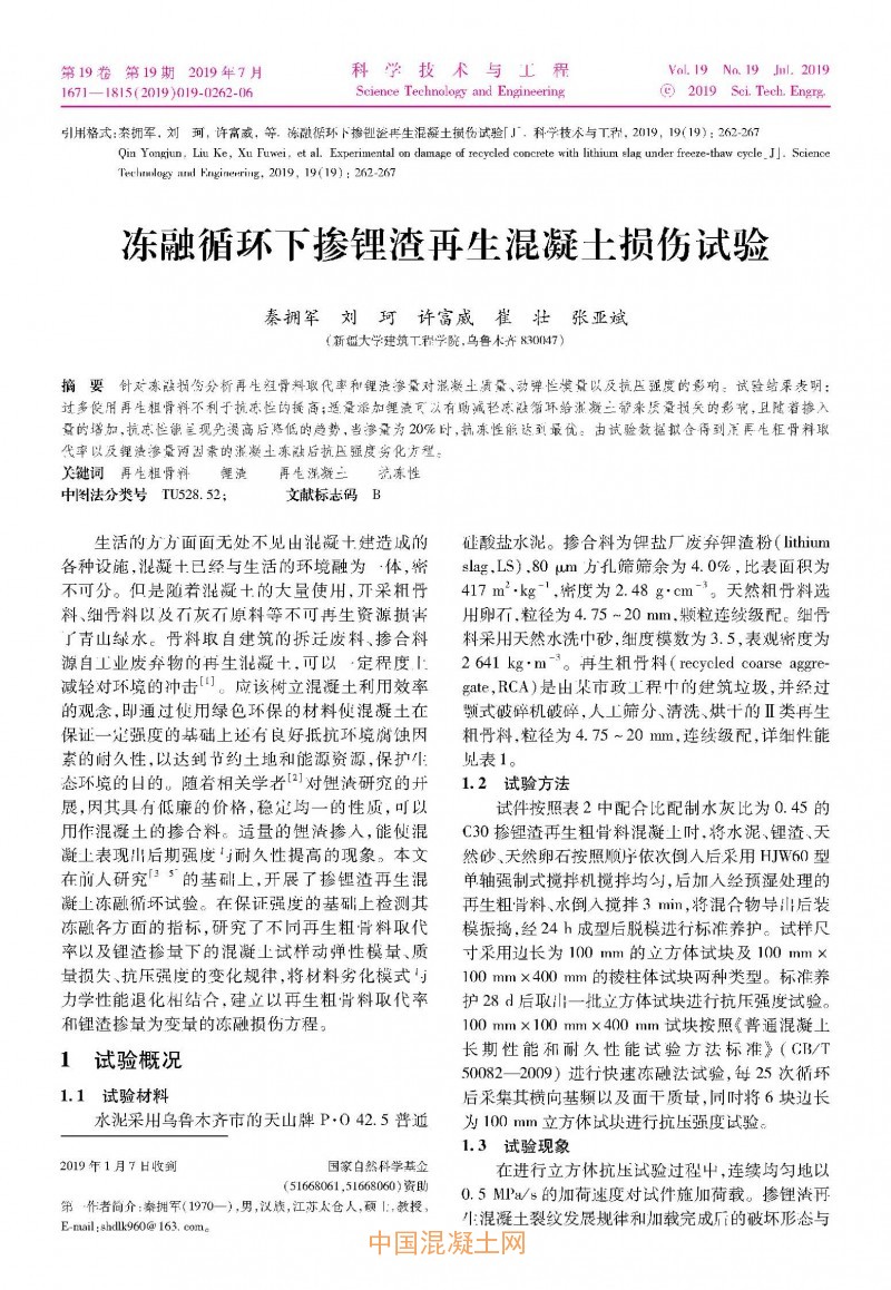 點擊下載全文:凍融循環(huán)下?lián)戒囋偕炷翐p傷試驗