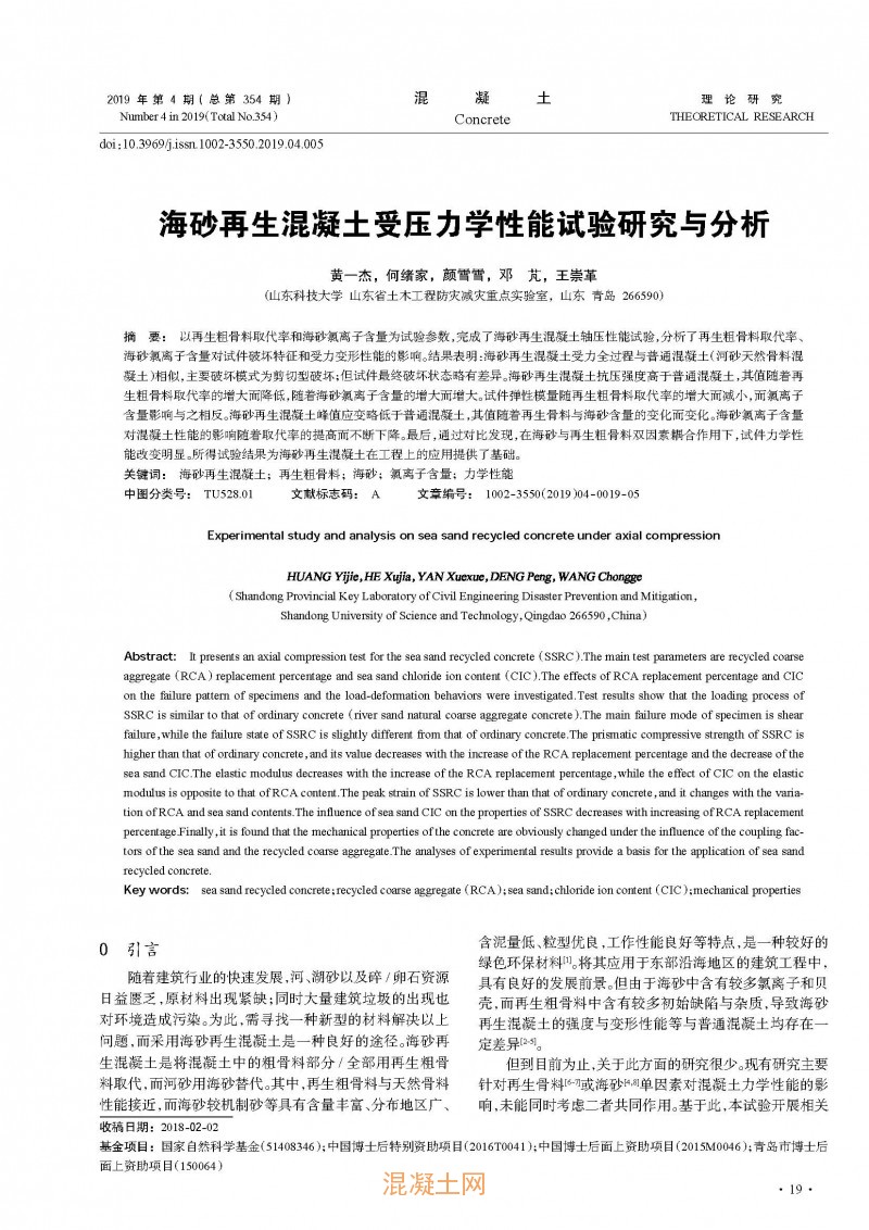 點(diǎn)擊下載全文:海砂再生混凝土受壓力學(xué)性能試驗(yàn)研究與分析