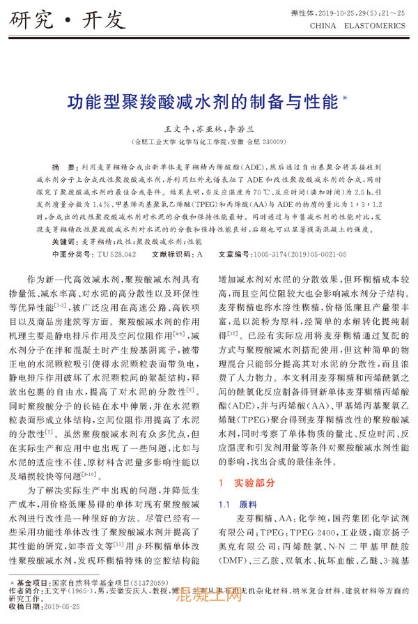 點擊下載原文:功能型聚羧酸減水劑的制備與性能