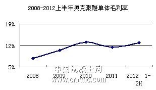 奧克股份于2012上半年報告中披露,減水劑聚醚產(chǎn)品的銷售情況與上年同期相比、季度環(huán)比均保持增長態(tài)勢,并保持50%以上的市場占有率。上半年,公司減水劑聚醚產(chǎn)品產(chǎn)銷量將近6萬噸,與去年同期相比增長15.71%,產(chǎn)銷量占公司總產(chǎn)銷量的比重達(dá)到70%左右。聚醚單體的銷量較去年同期有明顯的增加,并且毛利率水平較去年同期也略有增長,占總毛利的68.37%,較上年同期增長24.30%。