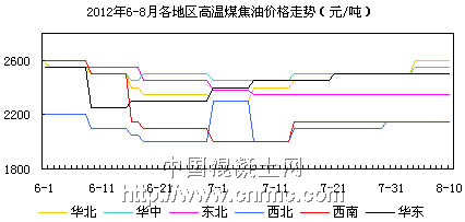華東地區(qū)目前市場主流報價4800-4900元,5-8月以來價格已下調(diào)200元左右,市場交投一般,近期煤焦油深加工市場整體開工率較低,而下游減水劑市場持續(xù)低迷走勢,部分地區(qū)廠家處于停滯狀態(tài),開業(yè)率維持在3成左右。而終端建筑市場新增開工面積嚴重不足,導致8月市場回暖無望。