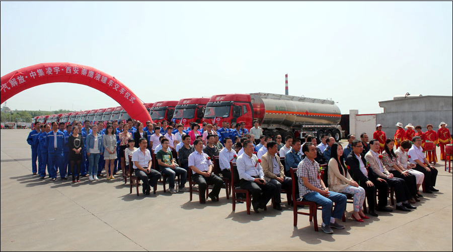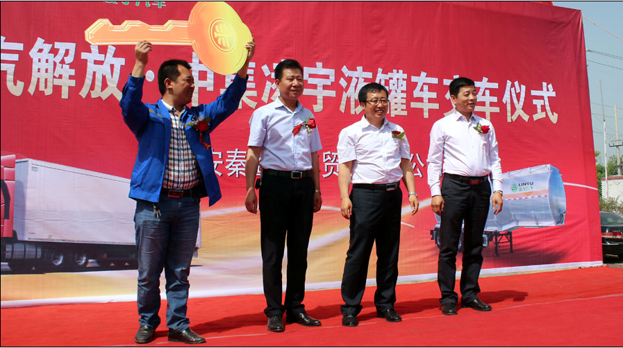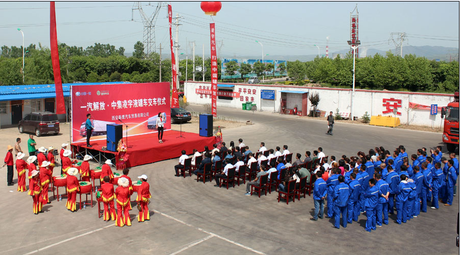 5月6日,風和日麗、艷陽高照,在“炎帝故里、青銅器之鄉(xiāng)”——寶雞一物流園停車場上,一排排中集凌宇液罐車雄赳赳氣昂昂,煞是壯觀!中集凌宇聯(lián)合一汽解放、西安秦鷹舉辦了20臺液罐車交車儀式。出席會議的領導有物流公司總經(jīng)理王偉、一汽解放陜西商代處經(jīng)理王亮、西安秦鷹總經(jīng)理林移文、中集凌宇營銷公司副總經(jīng)理胡江生、陜西大區(qū)經(jīng)理曹結(jié)朝等,參會的還有當?shù)毓芪瘯?、運管所、派出所、交警隊的相關領導以及當?shù)匚锪鞴?、危險品行業(yè)用戶等100余人。
