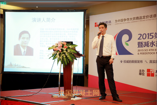 會議中中國混凝土網(wǎng)CEO王驊先生發(fā)表了題為“2015中國減水劑現(xiàn)狀與發(fā)展趨勢”的演講,主要闡述了建筑材料行業(yè)發(fā)展新常態(tài)下單體及減水劑企業(yè)該何去何從,以及新產(chǎn)品、新技術(shù)、新工藝給行業(yè)帶來怎樣變化等問題,引起會上代表熱烈反響。