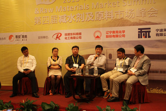 會議最后,由遼寧奧克董事長朱建民先生、科隆精化董事長姜艷女士等六位業(yè)內(nèi)知名人士組成了臨時專家小組,對主持人提出的行業(yè)內(nèi)幾項問題做出了解答。訪談過程中,各位嘉賓侃侃而談,在“未來兩大減水劑市場占比及原料價格走勢”這一問題上更是引起了激烈的討論。最后,嘉賓訪談環(huán)節(jié)結(jié)束,2013年第四屆減水劑及原料市場峰會也圓滿落幕。