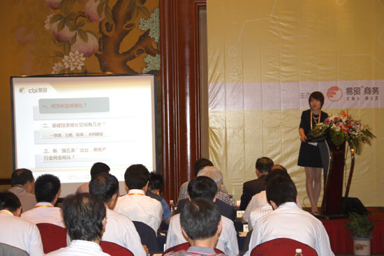 上午9點,大會正式開始。在致辭之后,由上海易貿(mào)研究中心宏觀經(jīng)濟助理研究員潘航女士率先發(fā)言。她以最近炙手可熱的話題——城鎮(zhèn)化為主題,從宏觀的角度分析了未來我國基建投資的增長趨勢。她從鐵路、公路、機場、水利四個方面詳細的闡述了我國基礎(chǔ)建設(shè)與國外發(fā)達國家的差距,并表示2013年很可能成為基建投資真正落實的爆發(fā)期。最后,還針對“國五條”實施細則,對房地產(chǎn)行業(yè)的前景進行了總結(jié),并表示中長期的剛性需求將會推動房地產(chǎn)市場,未來仍具有向上動能。