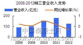 柳工股份旗下鴻得利公司是專注于混凝土機(jī)械行業(yè),集混凝土機(jī)械產(chǎn)品研發(fā)、生產(chǎn)和營(yíng)銷于一體的高新技術(shù)企業(yè)。柳工2012年實(shí)現(xiàn)營(yíng)業(yè)收入126.3億元,同比下降29.4%,日前公司發(fā)布的2013年一季報(bào)顯示,公司一季度實(shí)現(xiàn)營(yíng)業(yè)收入31.2億元,同比下降8.9%,行業(yè)需求持續(xù)低迷,使得收入顯著下滑。