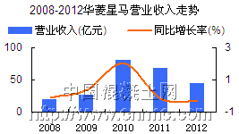 華菱星馬是一家主要經(jīng)營(yíng)多系列散裝水泥車、混凝土攪拌車及混凝土泵車等專用汽車、汽車配件的生產(chǎn)與銷售的公司,是目前國(guó)內(nèi)最大的罐式專用汽車生產(chǎn)企業(yè)之一。2012年公司營(yíng)業(yè)收入44.75億元,較上一年同比減少34.7%,營(yíng)業(yè)利潤(rùn)9336.81萬(wàn)元,同比減少83.42%。