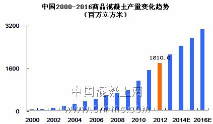 中國(guó)商品混凝土市場(chǎng)自2000年開(kāi)始,增長(zhǎng)就大幅度提升,2000-2012年平均增幅高達(dá)30%左右。但受全球經(jīng)濟(jì)危機(jī)的影響,中國(guó)2008年的商品混凝土市場(chǎng)也受到了不小的沖擊,商品混凝土的增長(zhǎng)率大幅度下滑。不過(guò)與歐盟、美國(guó)等其他發(fā)達(dá)國(guó)家混凝土負(fù)增長(zhǎng)率而言,中國(guó)混凝土市場(chǎng)表現(xiàn)的還是十分活躍的。這也反映出了中國(guó)的商品混凝土行業(yè)進(jìn)入高速發(fā)展時(shí)期的特征。但中國(guó)市場(chǎng)目前的市場(chǎng)狀況十分紊亂,行業(yè)內(nèi)需要進(jìn)行一番整合,清理一些市場(chǎng)上不規(guī)范的企業(yè),相信整合后對(duì)我國(guó)商品混凝土行業(yè)將起到較大的推動(dòng)作用。中國(guó)混凝土網(wǎng)預(yù)計(jì)“十二五”期間,預(yù)拌混凝土產(chǎn)量還將有小幅增長(zhǎng),到2016年中國(guó)預(yù)拌混凝土產(chǎn)量將突破30億立方米,混凝土行業(yè)將邁上一個(gè)新的臺(tái)階,但總體行業(yè)回歸平穩(wěn)狀態(tài)。
