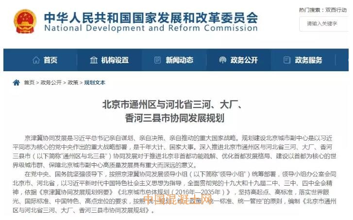 3月17日,國家發(fā)改委發(fā)布《北京市通州區(qū)與河北省三河、大廠、香河三縣市協(xié)同發(fā)展規(guī)劃》(以下簡稱“《規(guī)劃》”)。