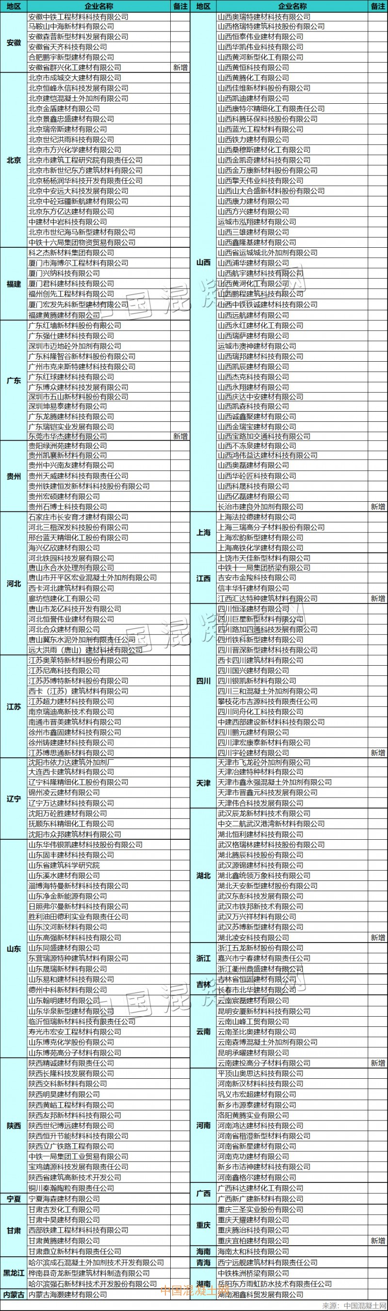 鐵道部CRCC認(rèn)證減水劑企業(yè)名錄