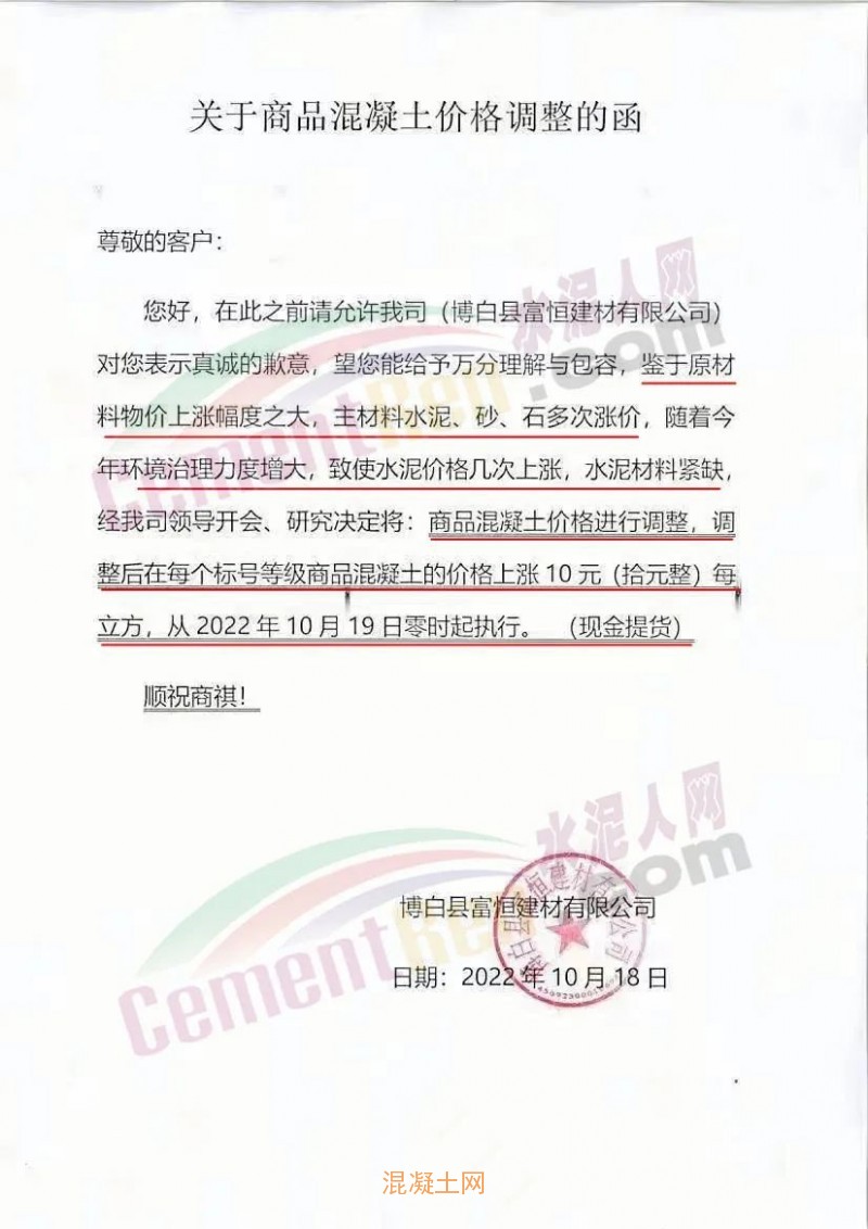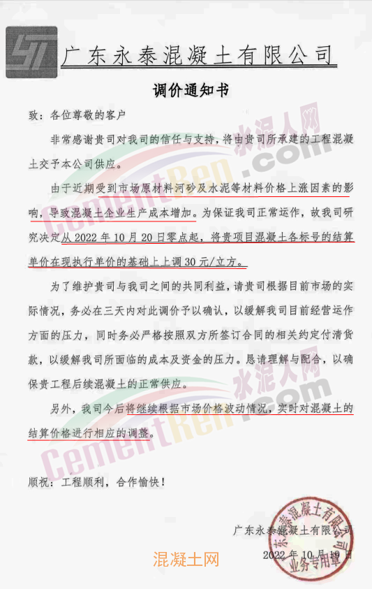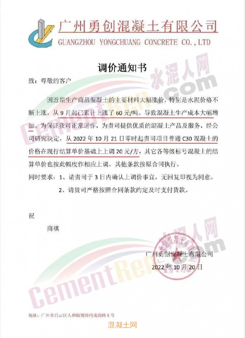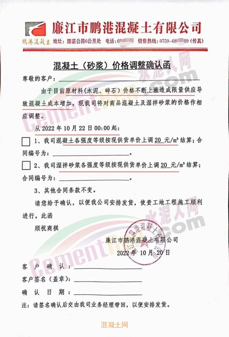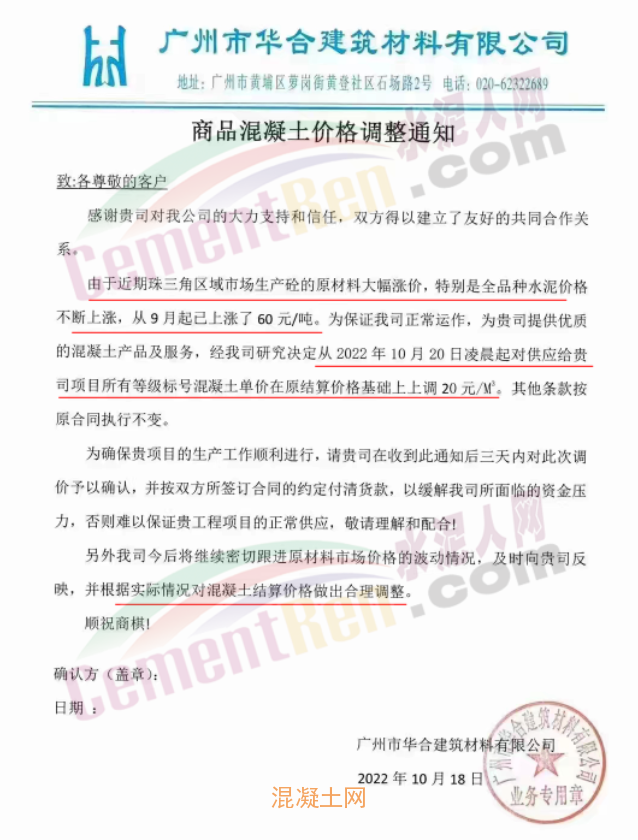 其中,廣東廉江市智鑫建材有限公司通知稱(chēng),因目前原材料市場(chǎng)受多方面影響,周邊范圍的石場(chǎng)限制爆破,大部分石場(chǎng)、砂場(chǎng)都暫停生產(chǎn),造成砂石貨源緊缺。砂、石、油價(jià)格都在不斷攀升,道路限運(yùn),限載,水泥價(jià)格近期也相繼上升,導(dǎo)致混凝土成本大幅增加。