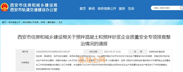 根據(jù)市安委辦《關(guān)于印發(fā)<西安市安全生產(chǎn)領(lǐng)域“防風(fēng)險(xiǎn)、除隱患、保安全、迎盛會(huì)”專項(xiàng)整治行動(dòng)方案>的通知》(市安委辦發(fā)〔2022〕3號(hào))及市住建局《關(guān)于印發(fā)<關(guān)于開展住建領(lǐng)域房屋市政工程安全生產(chǎn)治理行動(dòng)方案>的通知》(市建發(fā)〔2022〕47號(hào))的通知要求,按照《西安市住房和城鄉(xiāng)建設(shè)局關(guān)于開展兩類企業(yè)質(zhì)量安全工作專項(xiàng)排查整治的通知》的工作部署,市住建局于2022年7月至9月對(duì)我市預(yù)拌混凝土和預(yù)拌砂漿企業(yè)產(chǎn)品質(zhì)量和安全生產(chǎn)情況進(jìn)行了專項(xiàng)排查整治,現(xiàn)將檢查情況進(jìn)行總結(jié)通報(bào)。