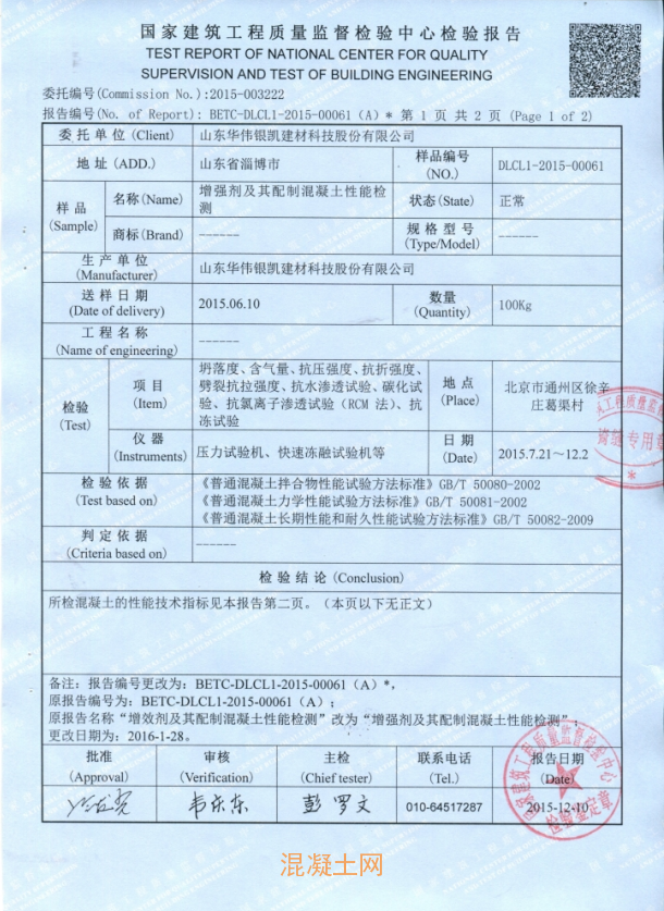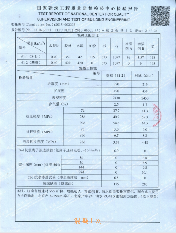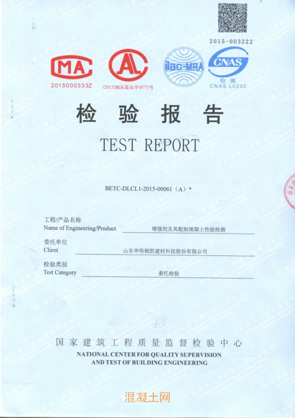 低碳混凝土高性能增強(qiáng)劑檢驗報告