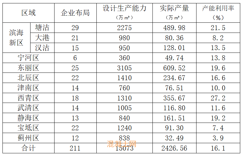 02 產(chǎn)能與利用率:通過(guò)上表分析,目前天津市預(yù)拌混凝土依然處于產(chǎn)能過(guò)剩局面,天津市年設(shè)計(jì)生產(chǎn)能力 15073萬(wàn)立方米。截止2023年12月底全市預(yù)拌混凝土企業(yè)共生產(chǎn)供應(yīng)各等級(jí)混凝土 2426.56萬(wàn)m3,產(chǎn)能利用率16.1%,比去年同期下降9%,仍低于全國(guó)平均水平。其中產(chǎn)能利用率最高的區(qū)域?yàn)槲髑鄥^(qū)為27.2%,產(chǎn)能利用率最低的為薊州區(qū)僅為3.9%。大港區(qū)、薊州區(qū)和寶坻區(qū)產(chǎn)能利用率均不足10%。東麗區(qū)攪拌站產(chǎn)能總量繼續(xù)領(lǐng)跑其他區(qū)域,薊州區(qū)產(chǎn)能總量最低。天津市環(huán)城區(qū)域普遍高于其他區(qū)域,軌道交通項(xiàng)目貢獻(xiàn)較大;濱海新區(qū)生產(chǎn)企業(yè)相比于去年增加14家,本區(qū)域競(jìng)爭(zhēng)程度進(jìn)一步加劇。