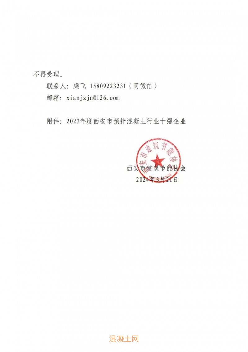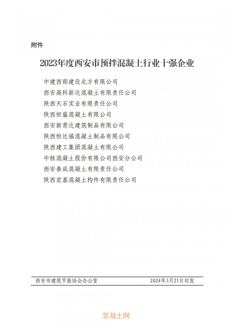 關(guān)于2023年度西安市預(yù)拌混凝土行業(yè)十強(qiáng)企業(yè)評(píng)選結(jié)果的公示