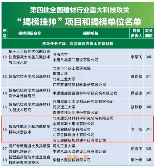 近期,第四批全國(guó)建材行業(yè)重大科技攻關(guān)“揭榜掛帥”榜單發(fā)布,金隅科研總院成功申報(bào)“超高性能水泥基功能梯度材料成套技術(shù)”項(xiàng)目。此次UHPC超高性能混凝土的成功研發(fā)與應(yīng)用,為后期完成揭榜掛帥項(xiàng)目打下堅(jiān)實(shí)的基礎(chǔ)。
