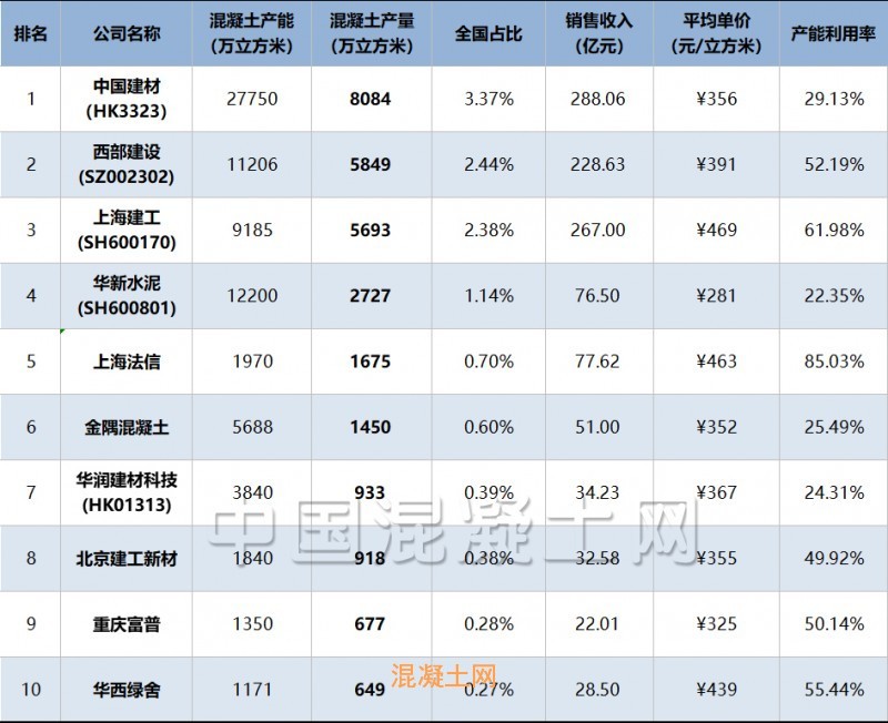 中國(guó)商品混凝土十強(qiáng)企業(yè)