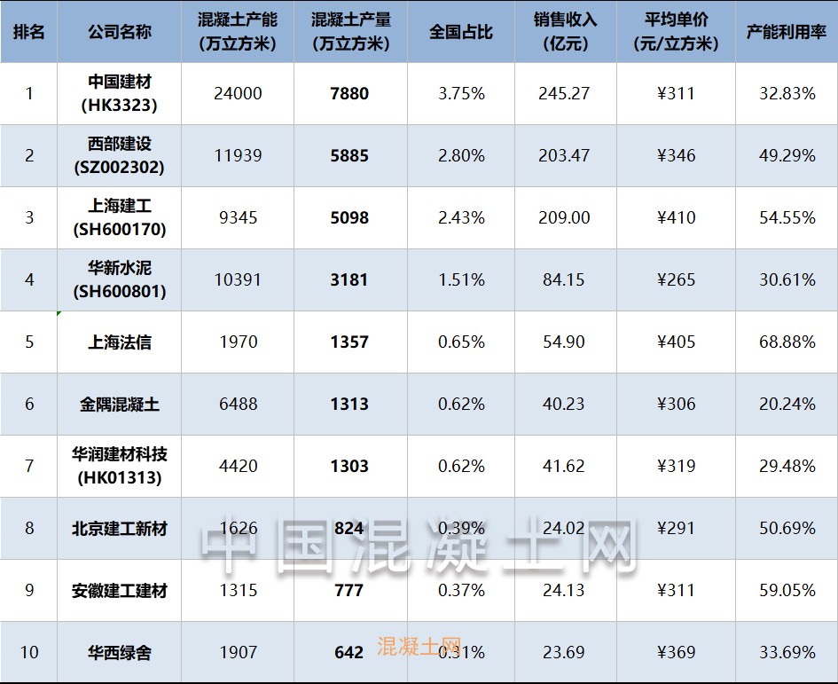 2024年中國(guó)商品混凝土企業(yè)十強(qiáng)
