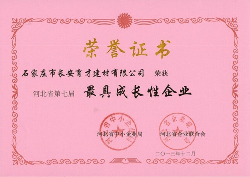 熱烈慶祝石家莊市長安育才建材有限公司榮獲“河北省第七屆最具成長性企業(yè)”。