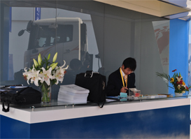編者按: 本屆寶馬展中,中集凌宇公司展示了集瑞重卡底盤12方攪拌車、廣汽日野底盤10方攪拌車和鋁合金材質(zhì)的液體半掛運(yùn)輸車等。整個展示現(xiàn)場以純潔的白色和大海的藍(lán)色為主色調(diào),勾勒出中集博大精深的工藝設(shè)計理念,也給現(xiàn)場的觀眾展示出一種優(yōu)雅脫俗的企業(yè)特質(zhì)。 |
