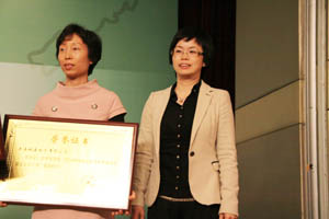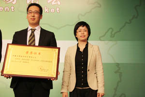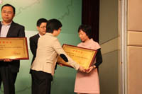 科之杰新材料集團(tuán)總經(jīng)理麻秀星博士(右)與中國(guó)建材股份有限公司行政人事部副總經(jīng)理鄭惠榮女士(左) |