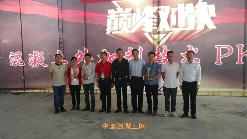 首屆混凝土外加劑技術(shù)擂臺(tái)賽評(píng)委與擂主們合影留念
